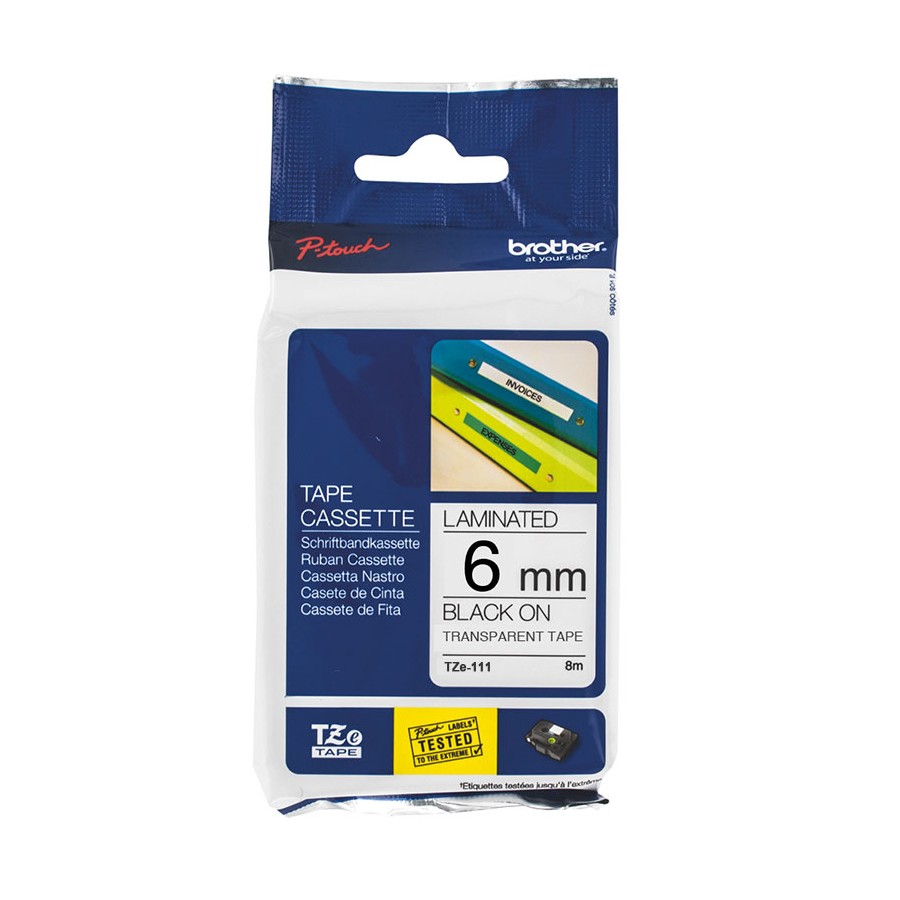 Le ruban d'étiquette thermique direct BROTHER TZe-111 est idéal pour un étiquetage discret et professionnel. Conçu pour les étiqueteuses BROTHER P-TOUCH, il offre une impression en encre noire sur fond transparent, permettant une intégration harmonieuse sur diverses surfaces.