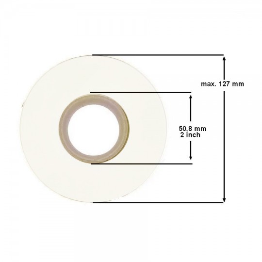 Ces étiquettes sont également compatibles avec des imprimantes jet d'encre acceptant des bobines de mandrin 50.8 mm et de diamètre 127mm.