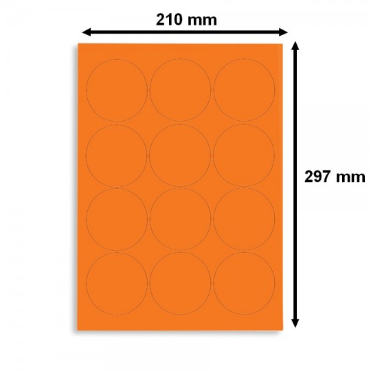 Etiquette en planche A4 couleur Fluo ronde diamètre 63,5 mm Lot De 10 Boîtes 0223X10