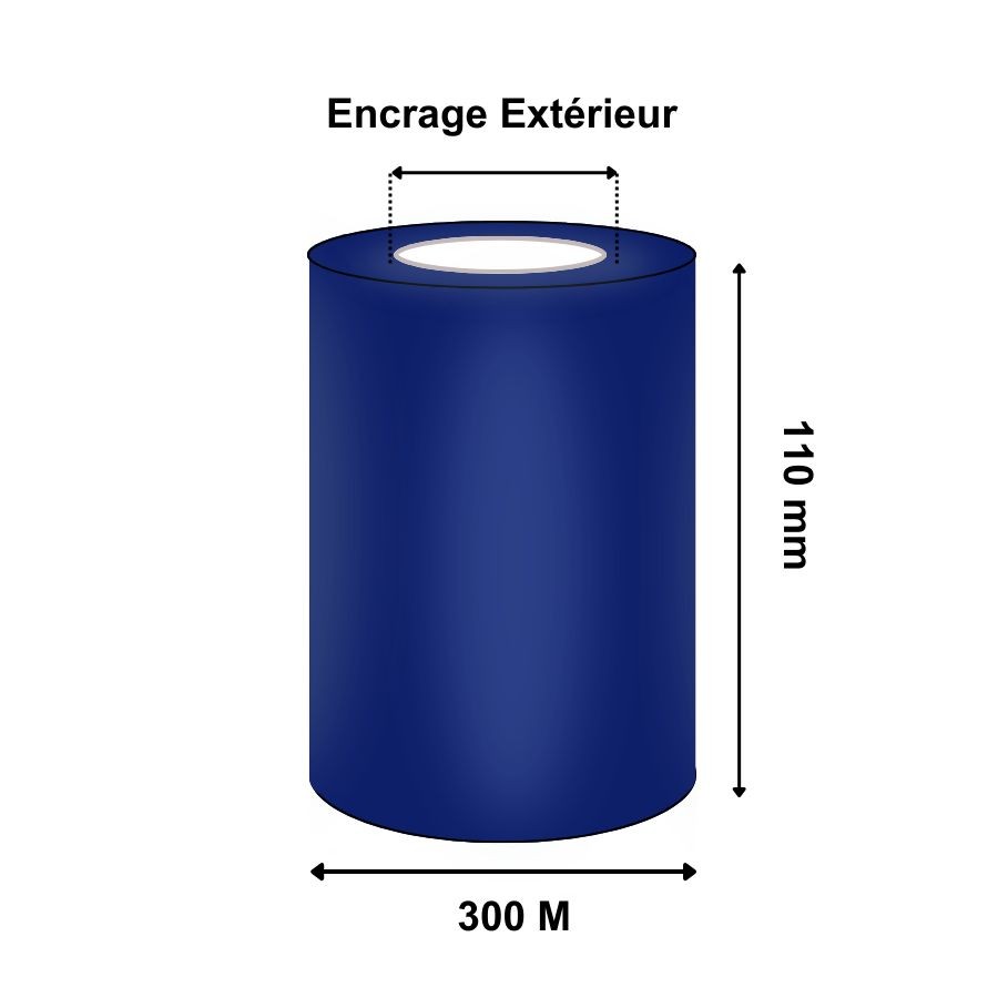 Description Ruban Transfert Thermique 110mmx300m Bleu Foncé APR5B T64194IO (Ancienne Réf : T22836)